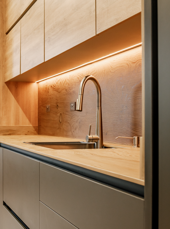 Una cocina que redefine la elegancia, la sobriedad, el estilo y que se mimetiza a la perfección con el espacio cálido, simple y sofisticado que la rodea.